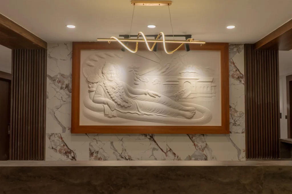 Designed with elegance and warmth, the property features modern amenities, thoughtfully curated spaces, and a calm ambiance that allows you to unwind after a spiritually enriching day. Every detail is crafted to ensure your stay feels divine, restful, and memorable.